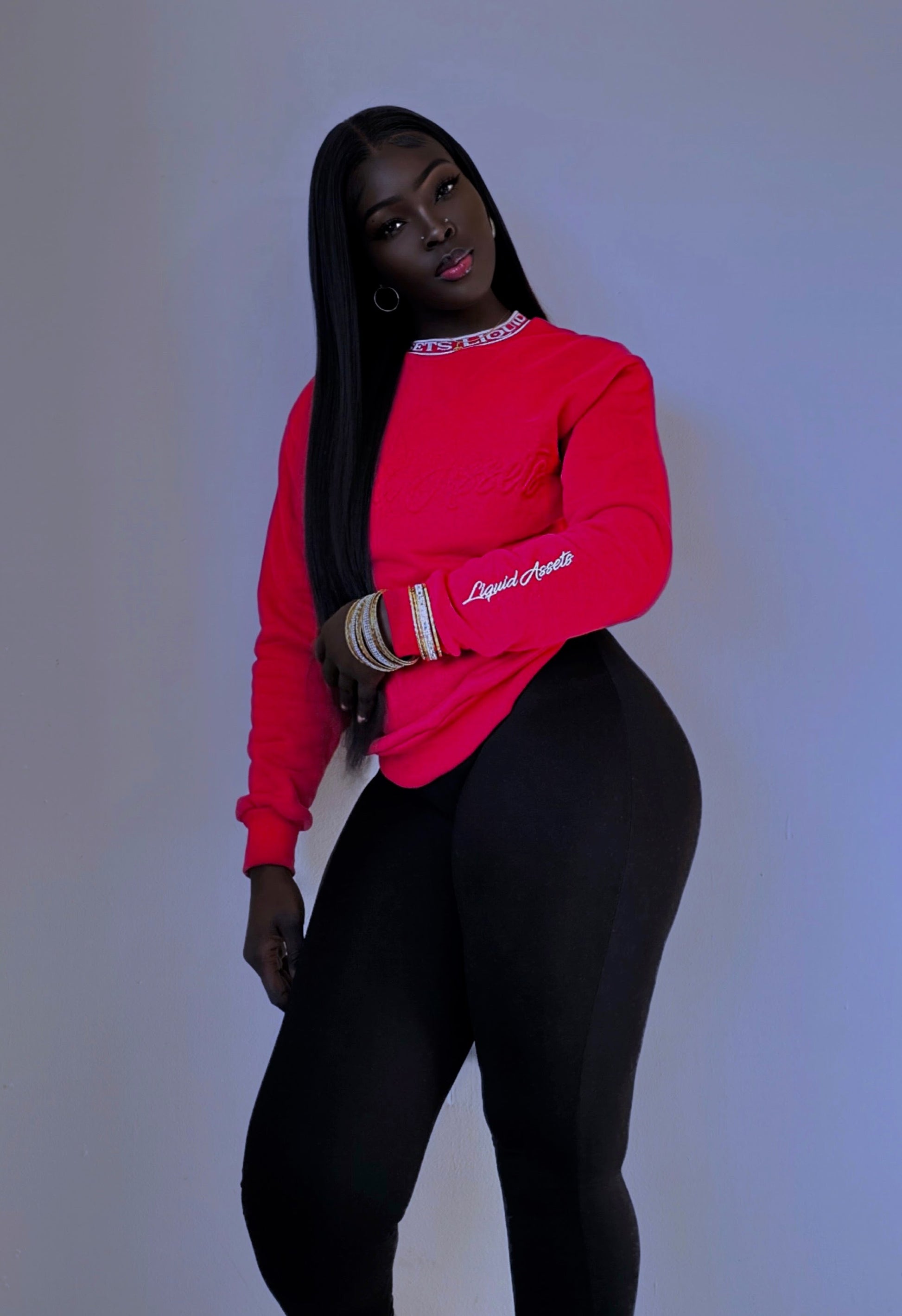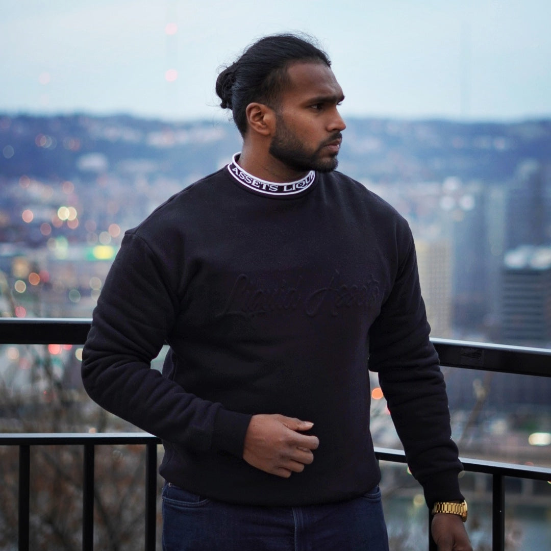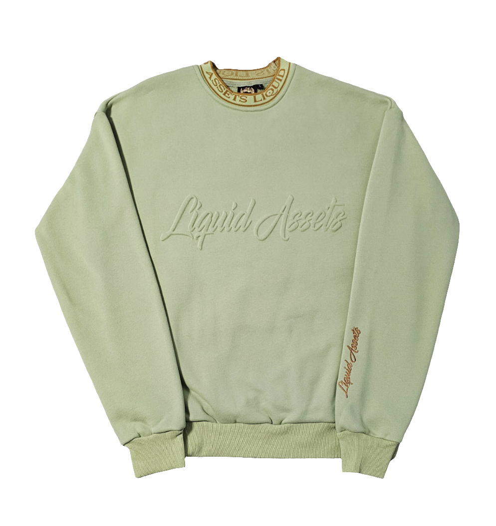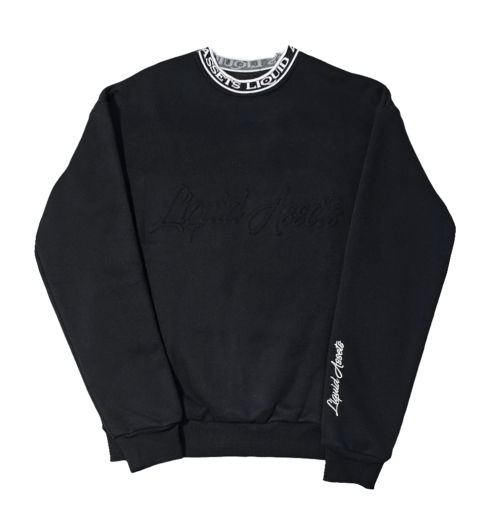 Crew neck sweatshirt with Liquid Assets Embossed on chest also stitched in collar and sleeve. This Item is very warm and comfortable.